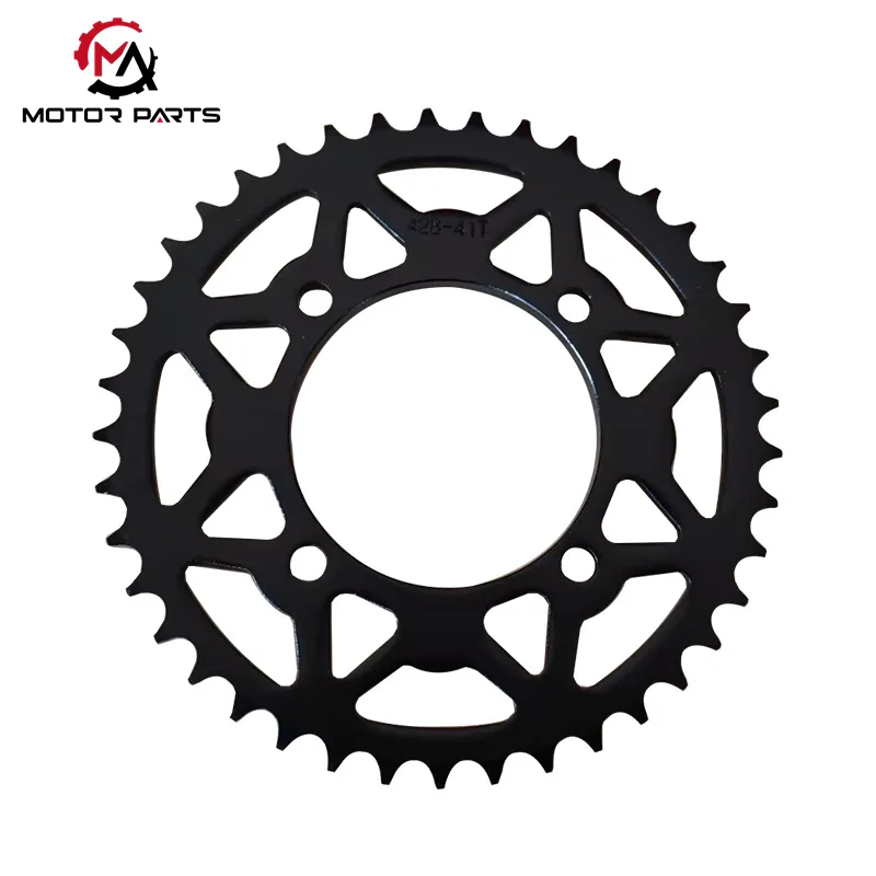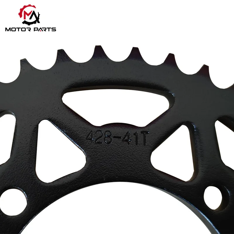 Professzionális motorkerékpár lánckerékgyárként nagy szakítószilárdságú ötvözött acélt használunk, és CNC precíziós formázást és kétlépcsős hőkezelési eljárást (kioltás és temperálás) alkalmazunk annak biztosítására, hogy a fogfelület megfelelő keménységű legyen, miközben a 428-41T motorkerékpár lánckerék fő összetevői erős ütésállóságot tartanak fenn. A 41 fogból álló specifikációt a gyorsulásra és az üzemanyag-fogyasztásra egyaránt optimalizálták.