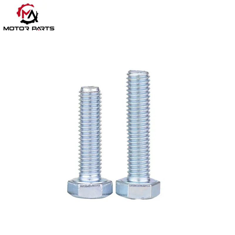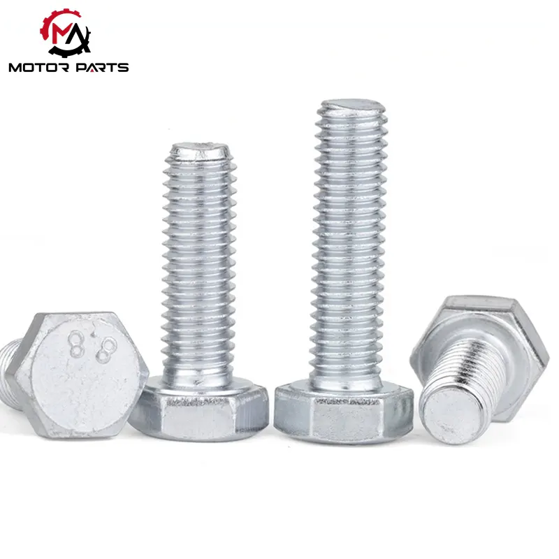 A horganyzott szénacél M8-M14 hatlapfejű csavar a specifikációk teljes skáláját kínálja, amelyek különböző terhelési szintű motorkerékpár-alkatrészekhez használhatók: