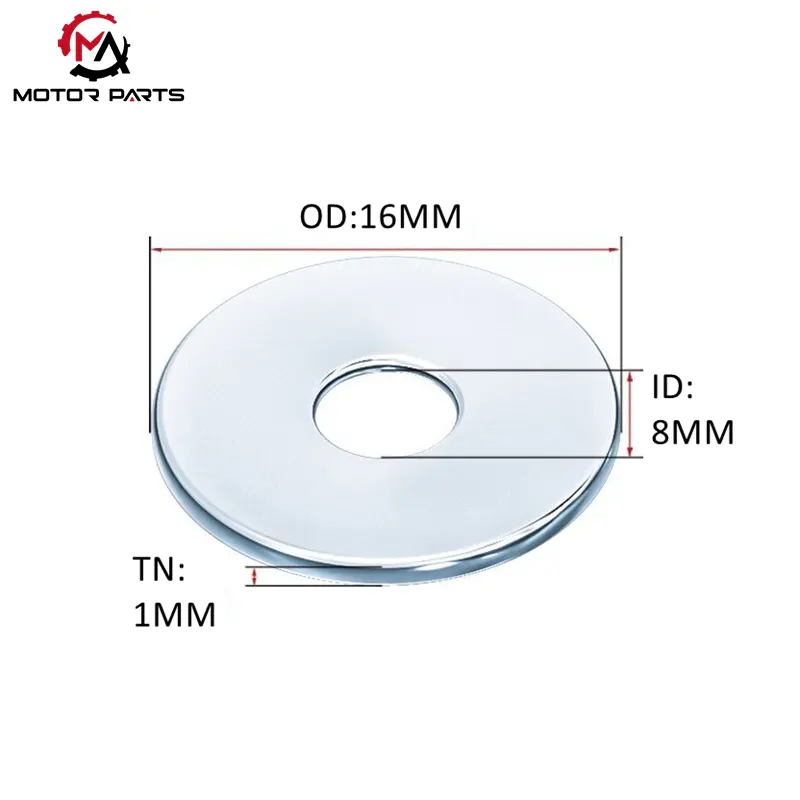 Ez a kiváló minőségű M8 motorkerékpár horganyzott anya alátét egy általános specifikáció a könnyű motorkerékpár-alkatrészek rögzítésére. A tényleges gyártás és összeszerelés során: