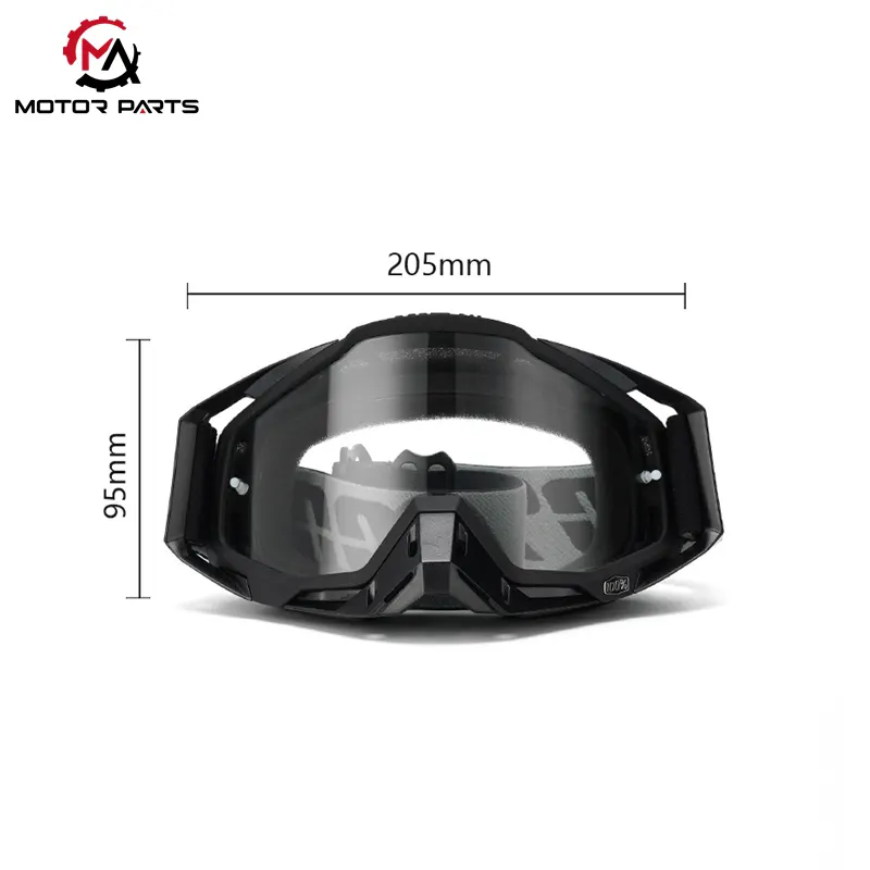 A színes lencsékkel ellátott motoros szemüveg repülőgépipari minőségű polikarbonát (PC) anyagot használ, amelyet magas hőmérsékletű precíziós fröccsöntéssel alakítottak ki, ami stabil szerkezetet és nagyobb szilárdságot eredményez.