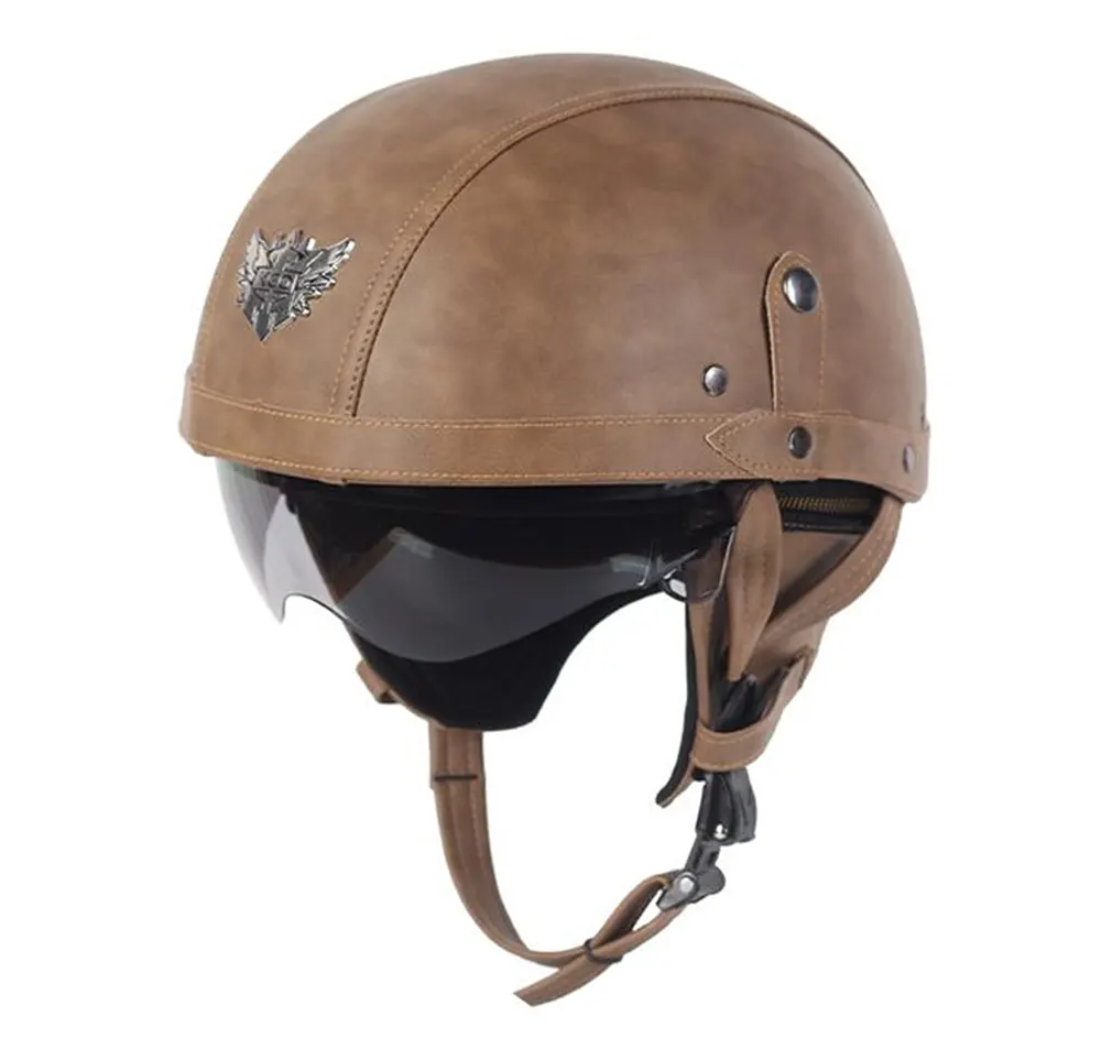 A személyre szabható Motorcycle Half Face Sisak bőr védőszemüveggel a kínai Max Trading klasszikus félsisak terméke, amelyet városi lovaglás és vintage motorozás szerelmeseinek terveztek.