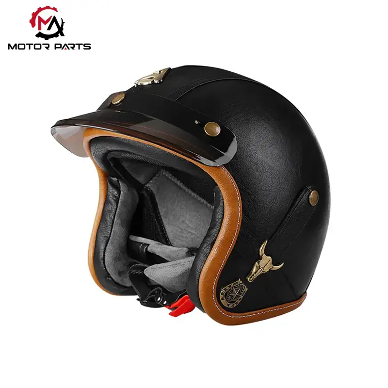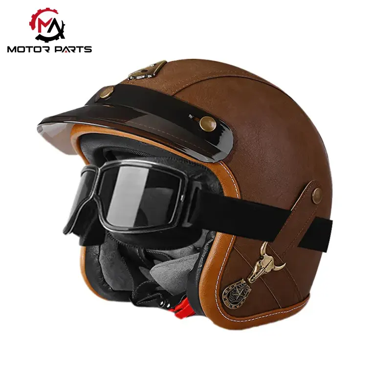 A China Motorcycle Half Face Helmet Leather with Goggles a Manufacturer Max Trading retro stílusú félsisak terméke, amely ötvözi a biztonságot és a stílusos dizájnt, és olyan versenyzők számára alkalmas, akik értékelik az egyéniséget és a praktikumot.