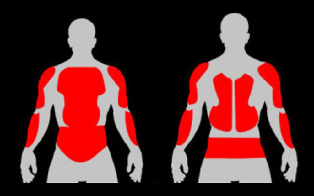 Motorkerékpár-mentesítő felsőtest páncél Varrat nélküli cipzáras interfészekkel felszerelve, hogy közvetlenül csatlakozhasson a kerékpáros ruházathoz az egységes védelmi rendszer érdekében. Az ízületi lemezek anatómiailag igazodnak a lovaskesztyűk és nadrágok védőzónáihoz.