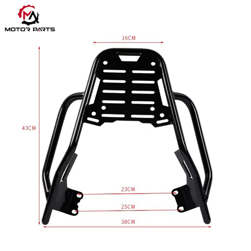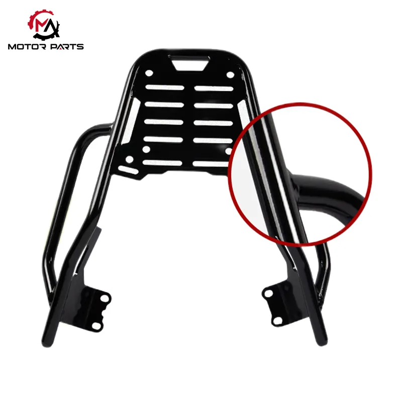 A Yamaha 125 hátsó csomagtartó nagy szilárdságú acélból készült, és erős és rugalmas szerkezetet kínál a tartós használatra. Különböző típusú poggyászok megbízható szállítására tervezték, így szilárd és megbízható megoldást kínál a mindennapi utazásokhoz. Legyen szó rövid ingázásról vagy hosszabb utakról, ez a hordozó biztosítja a holmija biztonságos szállítását anélkül, hogy a tartósság vagy a stílus rovására menne.