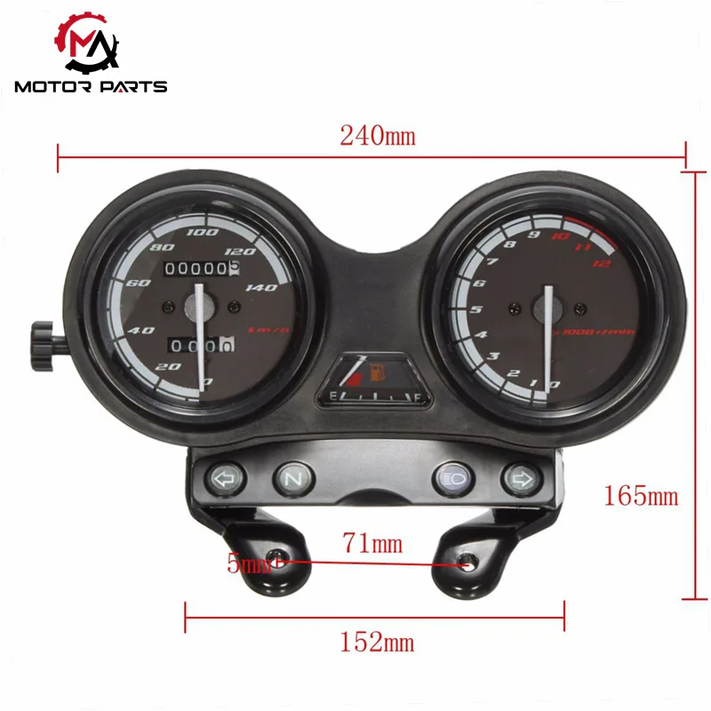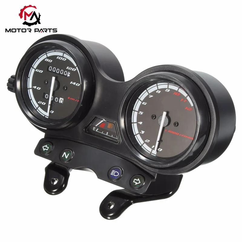 A Yamaha YBR125 motorkerékpár-sebességmérőnk "kettős tárcsás független kijelzővel" rendelkezik, a motor fordulatszámmérőjével a bal oldalon, a sebességmérővel és az üzemanyagszint-mérővel pedig a jobb oldalon. Nem igényel LCD kijelző modult, teljes mértékben mechanikus mutatókra és skálákra támaszkodik az adatok megjelenítéséhez, így teljesen kiküszöböli az elektronikus alkatrészek szükségességét. Professzionális motorkerékpár-tartozékok gyártójaként és szállítójaként a Max Trading büszkén szállítja a Yamaha Yamaha YBR125 motorkerékpár-sebességmérőt, amely teljesen mechanikus, minden mutatót mutató kialakítású.